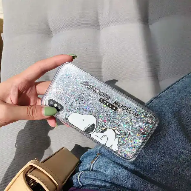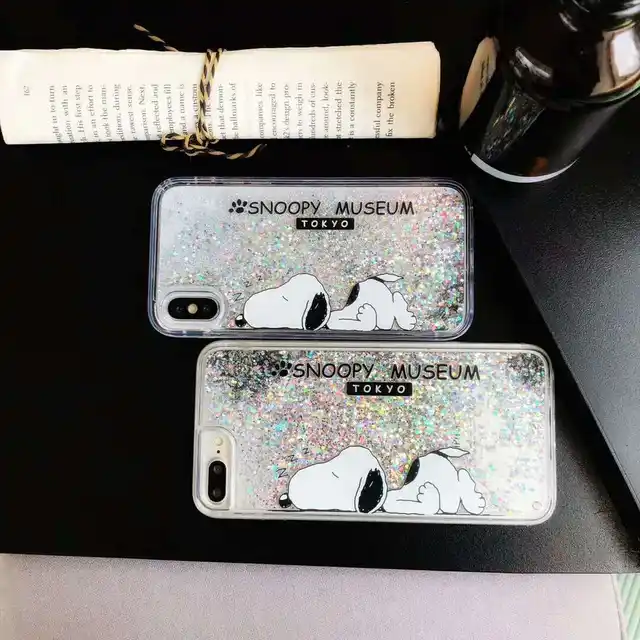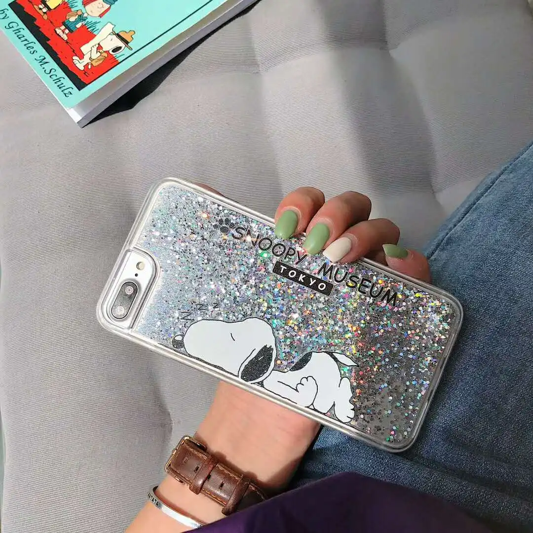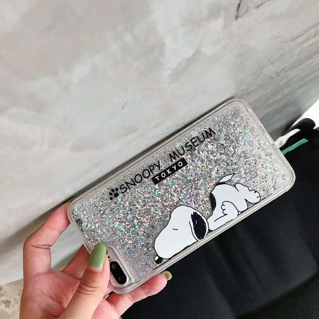 Material:Cartoon Snoopys Glitter powder quicksand Cases