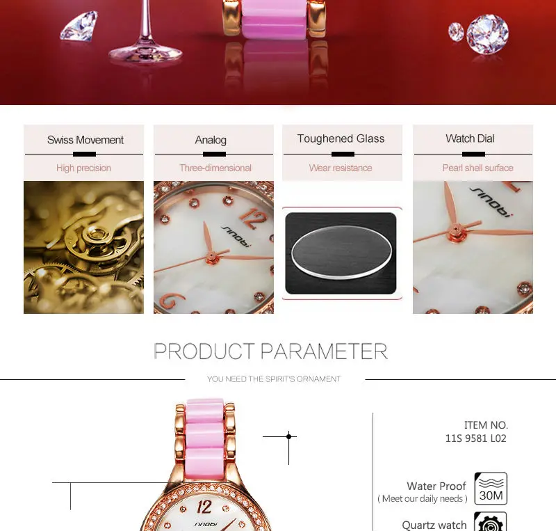 Watch case color:Rose gold with diamond