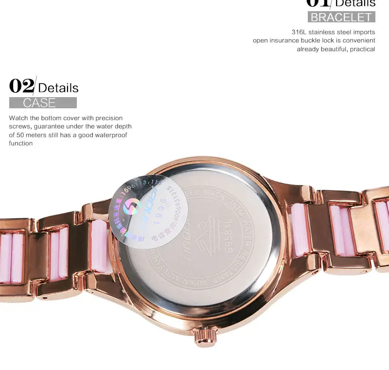Watch band color:Pink and rose gold