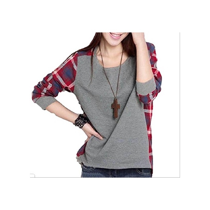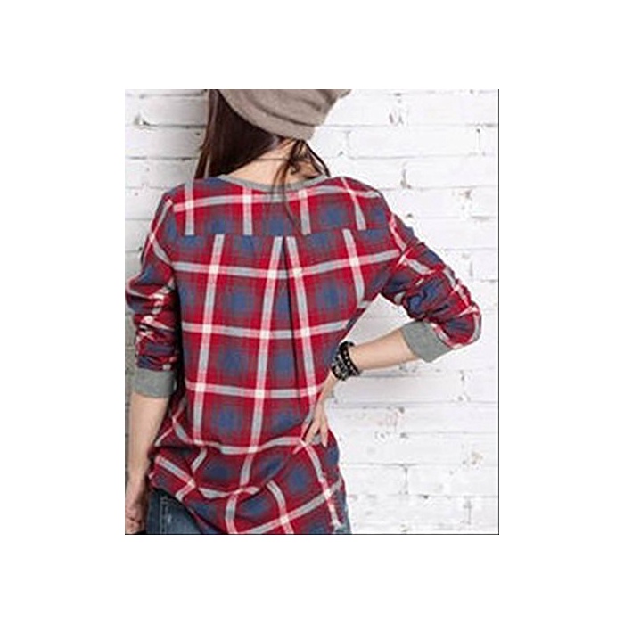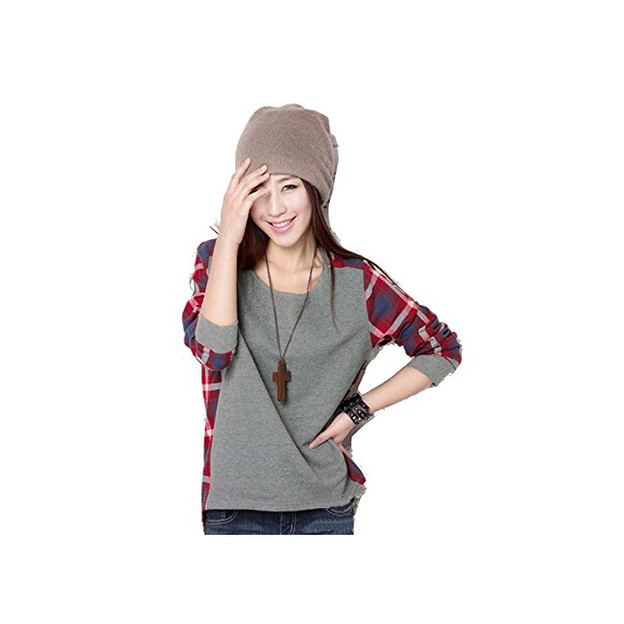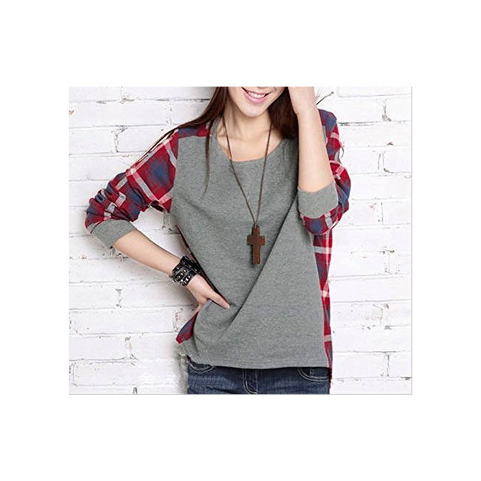 (《미네센무》)Minesam 여성 레이디스 봄과 여름 추 셔츠 톱스 긴 소매 격자 체격 어른 변환 체크 무늬 멋쟁이 비대칭 귀엽다 레이어드풍