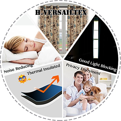 Fabric Type: Ultra soft and smooth three layers woven textured natural blackout fabric, innovated microfiber material with classical printed floral pattern. Curtains Features: 1. H.Versailtex blackout curtain panel against cold and heat outside, thermal insulated and room darkening, energy efficient, noise reducing, unwanted extra light decreasing, privacy protection, easy care. 2. Designed pattern is on the front side while back side to the window is solid effect. Decorate your bedroom, living room, family room, kitchen room, dining room and kids room more Contemporary / Victorian / Classical / Traditional. Fabric Weight: 230g/square meter of high density fabric. Package Method: Nice pvc waterproof bag, brand card inside. Number Of Panel Included Each Package: 1 Panel Curtain Top Construction: Simply installation of this window panel with antique metal grommets, external diamter of grommet: 2.4", inner diameter: 1.6", it is smooth slide with your standard or decorative curtain pole. More Choices: Multiple size options offered ( length in 63", 84", 96" ) and various patterns are ready ( Turquoise Birds, Vintage Floral, Aqua Floral, Navy Stars, Geo Triangle, Sea Whales ) Kindly Reminder: For proper fullness, panels should measure 2-3 times the width of your window. 0 |