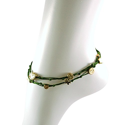 -. Binding : Jewelry -. Brand : MIZZE Made for Luck Jewelry -. Department : womens -. Feature : 10.5" DOUBLE WRAP ANKLET for COMFORTABLE FIT - The double wrapped anklet is 21" in total length - so size 10.5" and wraps twice around the ankle. / GREEN HANDMADE WAX WIRE TIES ANKLET - The ties anklet is made with Green wax cotton (durable) and various charms. / HAPPINESS & LOVE CHARMS ANKLET - The charms include the Hamsa Hand, Bird of Song, Heart and Star charms. / QUALITY MATTE GOLD PLATED CHARMS - The charms have a quality matte gold finish plating. / **100% FULL MONEY BACK GUARANTEE - We stand behind our brand and provide a 100% full Money Back Guarantee. If you are unhappy with your Charms Anklet, for any reason please contact us! -. Label : MIZZE Made for Luck Jewelry -. Manufacturer : MIZZE Made for Luck Jewelry -. Model : MZ6009GRG -. MPN : MZ6009GRG -. PartNumber : MZ6009GRG -. ProductGroup : Jewelry -. ProductTypeName : FASHIONNECKLACEBRACELETANKLET -. Publisher : MIZZE Made for Luck Jewelry -. Studio : MIZZE Made for Luck Jewelry -. Title : Green & Gold Double Wrap Charm Anklet for Good Luck & Happiness - 10.5"