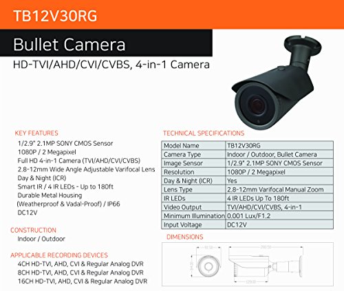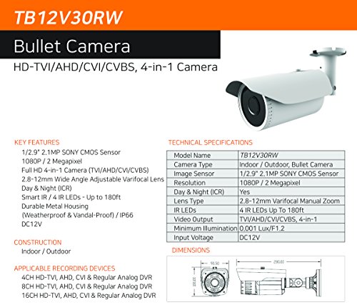 -. Title : VIEWISE Full HD 1080P 2Megapixel Bullet Camera, Indoor / Outdoor Surveillance Security Camera Video Monitoring Night Vision 4-in-1 HD-TVI, AHD, CVI, CVBS camera 2.8-12mm Varifocal Lens