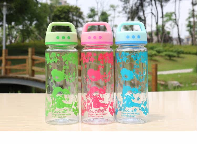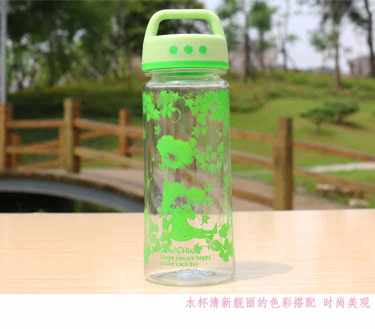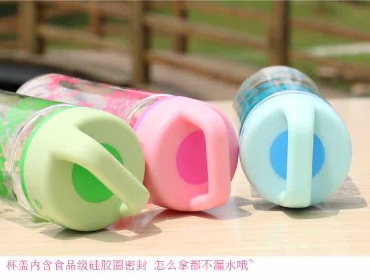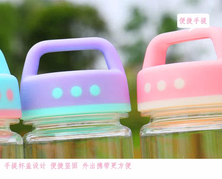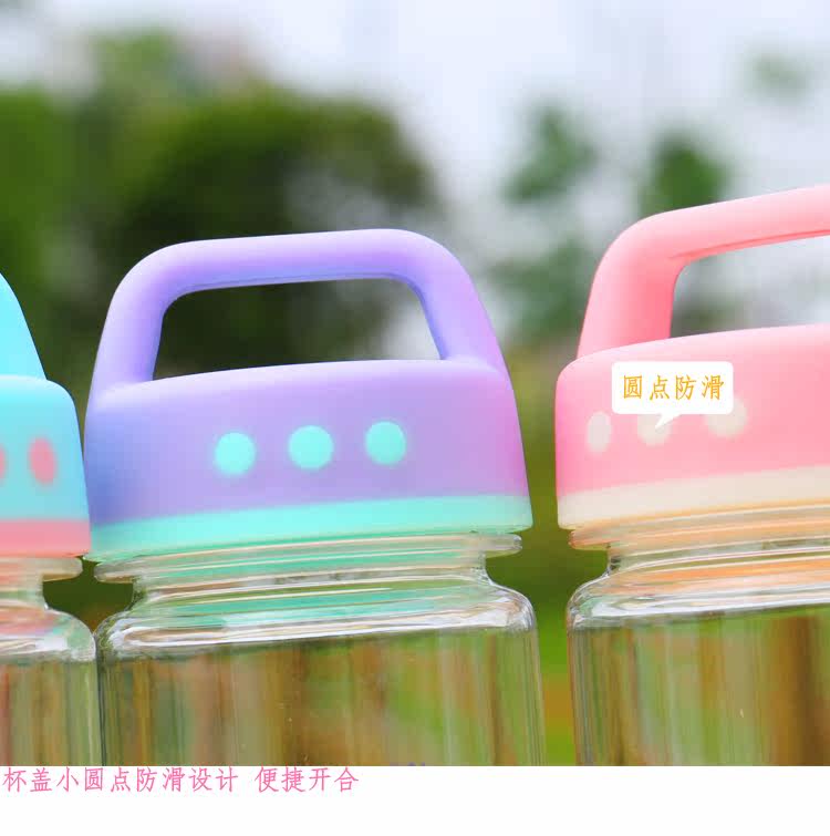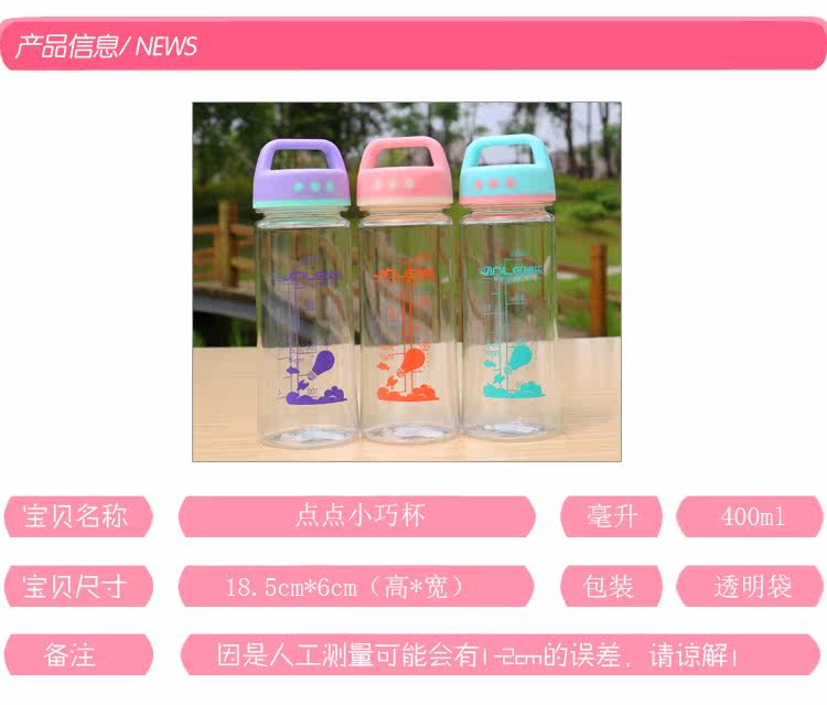 韩国简约点点塑料杯男女便携花茶杯 透明带盖水杯大容量办公杯子