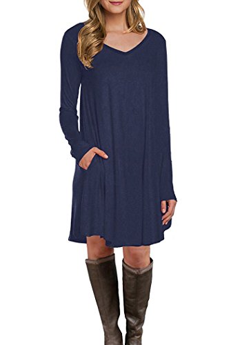 Features: casual T-shirt style,stretch,comfy loose fit ,flowy dress, can wear with leggings and boots.