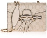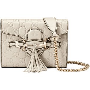 -. Brand : Gucci -. Color : Mystic White -. Department : womens -. EAN : 0888108226504 -. Feature : Mystic White guccissima leather with leather detail Light fine gold hardware Leather tassels and horsebit details Natural cotton linen lining / Double chain straps with leather shoulder panel and 23" drop Interior open pocket Slide flap closure with embossed gucci trademark detail / 7"W x 5.1"H x 1.9"D / The mini Emily chain shoulder bag multifunctions as both a cross body and a shoulder bag and has just enough room for the necessities / Made in Italy -. ProductGroup : Shoes -. ProductTypeName : HANDBAG -. Title : Gucci Emily Guccissima Mini Shoulder Mystic White Leather Handbag Bag Crossbody -. UPC : 888108226504 Gucci Emily Guccissima mini shoulder Mystic White Leather Handbag Bag Crossbody