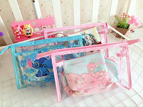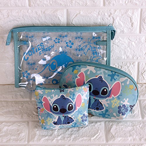 CJB Stitch Cosmetic Makeup Bag Purse Coin Pouch 3in1 Set Blue (US Seller)