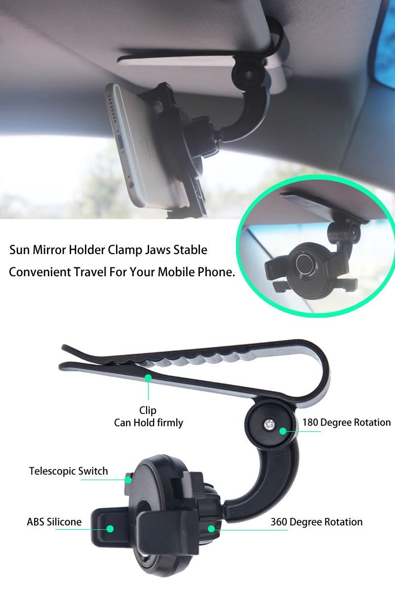 Car Phone Holder:Universal 360 Rotating Sun Visor Mount Holder Stand