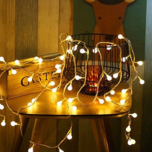 - Composition of String Lights - 16feet/5M globe string light is consist of 50 translucent globes, the diameter of each globe is 0.7 inch and spaced every 4 inch.