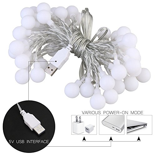 50 LED Globe String Lights, 16 Feet USB Powered Decorative Light For Indoor and Outdoor Decoration, Wedding, Christmas, Party, Garden, Home (Warm White)