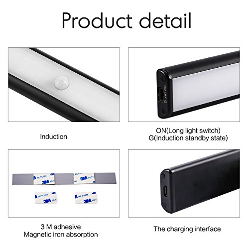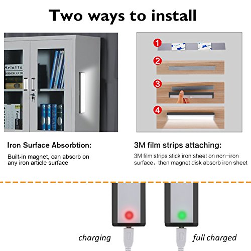 ★ Easy Installation: built-in magnet, you can stick the iron sheet which absorb sensor LED light to the cupboard or the wall. When need charge or change place,you can take it off anytime