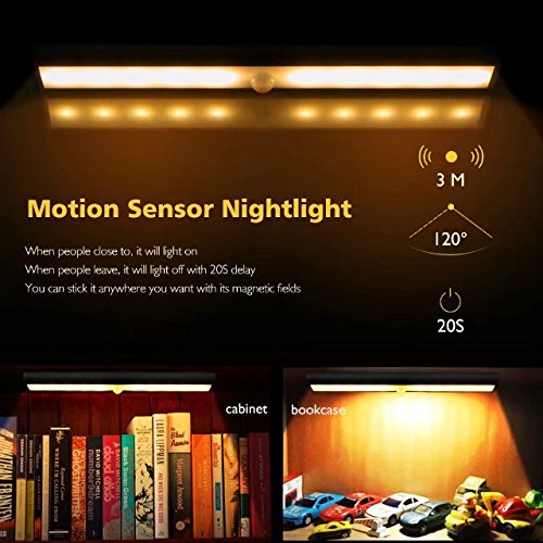 Package includes: * 2 x Rechargeable LED Motion Sensor Lights(Warm White Light)