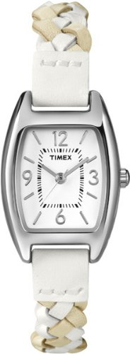 -. Title : Timex Women's T2N7649J Weekender Shaped Case White & Tan Woven Leather Strap Watch