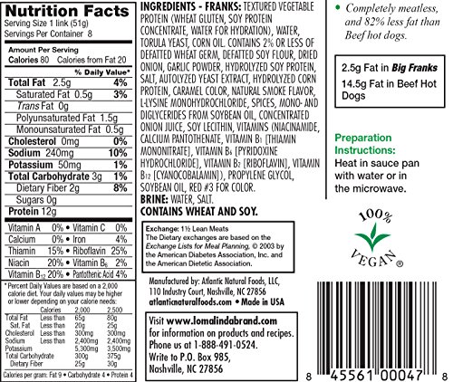 Loma Linda Low Fat Big Franks (20 oz.) (Pack of 12)