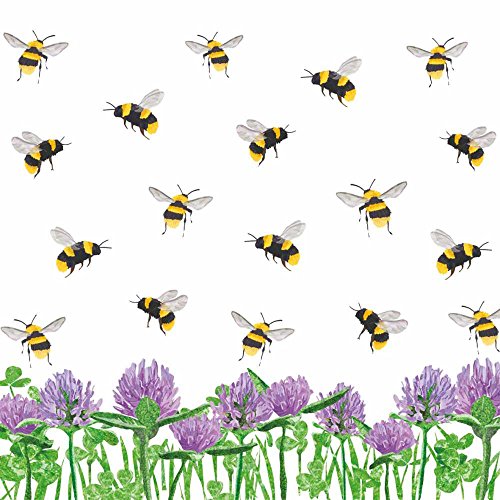Paperproducts Design 1331908 Lunch Napkin with Exquisite Honey Bees & Clover Design, 6.5 x 6.5", Multi