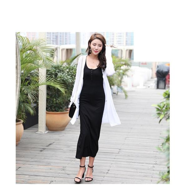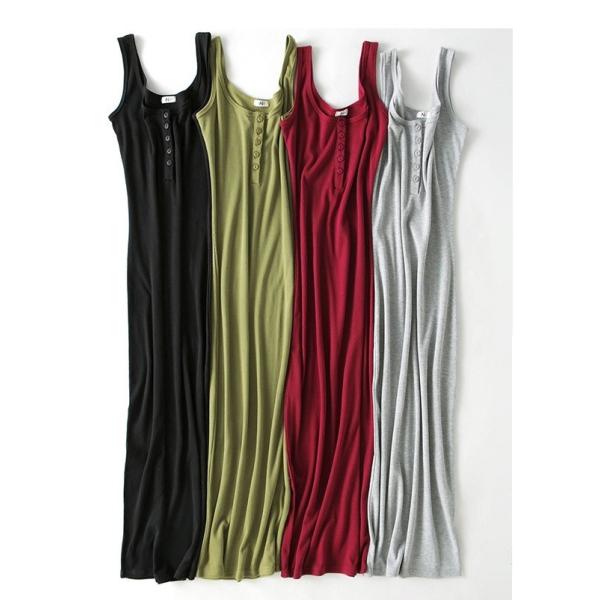 ラウンドネックのボタン留めデザインがワンポイントになったロングワンピース。