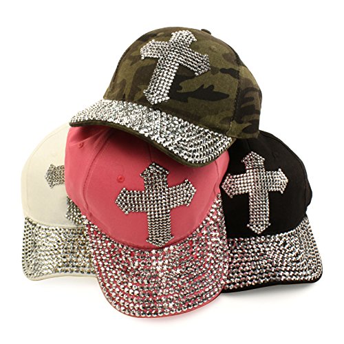 -. Title : Cross Jewel Rhinestone Bling Bling Studs Baseball Ball Cap Hat Adjustable White