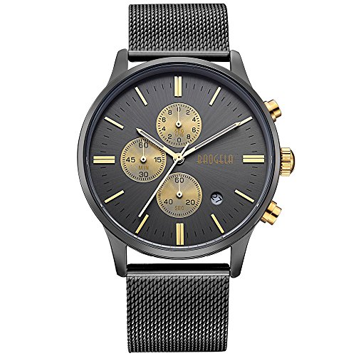 -. Title : Baogela Mens Chronograph Luminous Stainless Steel Mesh Strap Date Indicator Quartz Watches Black