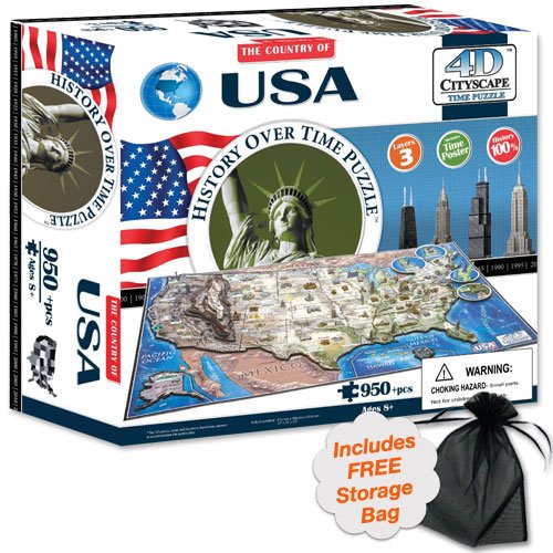 -. Binding : Toy -. Brand : 4D Cityscape -. EAN : 0937000027228 -. Feature : Comes with Storage Bag / Built in three layers / Contains more than 950 pieces / United States of America Cityscape Time Puzzle / Includes 4D time poster for reference -. Label : 4D Cityscape -. Manufacturer : 4D Cityscape -. ProductGroup : Toy -. ProductTypeName : TOYS_AND_GAMES -. Publisher : 4D Cityscape -. Studio : 4D Cityscape -. Title : 4D USA Cityscape Time Puzzle with Storage Bag -. UPC : 937000027228