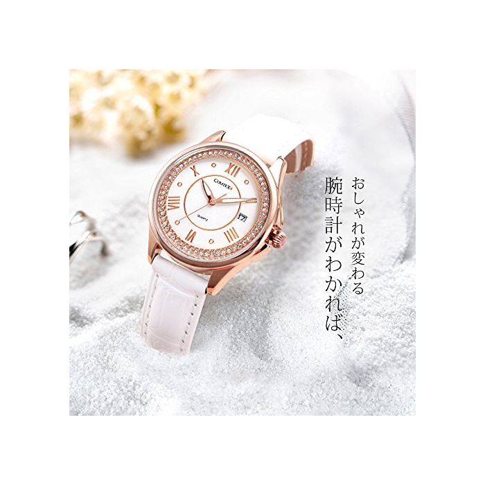 원본상품명: Comtex 腕時計 レディス 日本製クオツ クリスタル ホワイト 日付 アナログ ウオッチ 女性 時計 ピンクゴルド