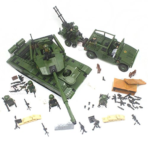 -. Feature : Modern war blocks Set Includes: 99 Main battle Tank, Jeep,9 Infantry figures, Huge pack of guns and Weapons Artillery / Also features Sandbags and Wall pieces, Tactical equipment kits and other combat accessories. / Includes instructions for the Tank and jeep,Everything in a blank cardboard box. It's a DIY military model, Compatible other leading brands / Bricks Blocks:840+pcs; Product Material: ABS; Ages: 6+ / Free Zipper bag;Free +2 figues;Free Dismantling Device.