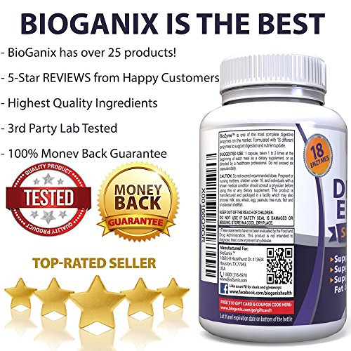 Why BioGanix? - Our Daily Essential Enzyme formula has 18 enzymes, is non-GMO, and is made right here in the USA, in GMP Certified and FDA Registered Facilities to the highest standards; All our products are also 3rd Party Lab verified; We are so proud of the gold quality of our products - we offer a 100% Money Back Guarantee! If you don't feel the benefits, just contact us!