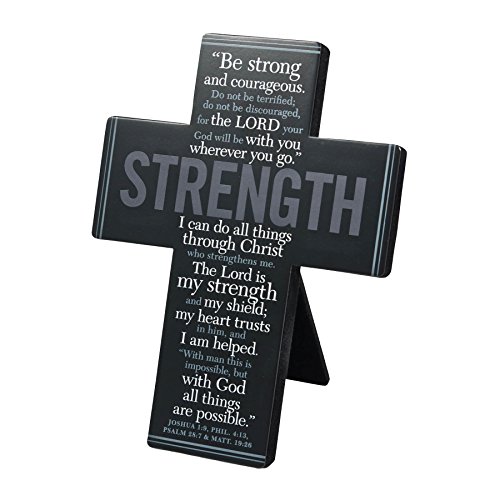 Lighthouse Christian Products Words of Inspiration Strength Metal Wall/Desktop Cross, 5 3/4 x 7 3/4", Black