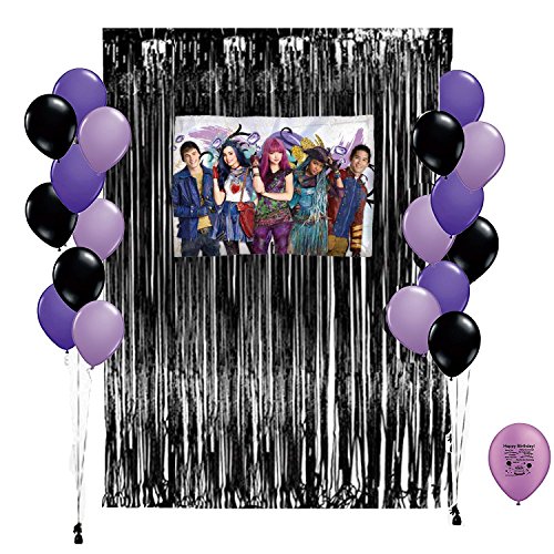 -. Binding : Toy -. Brand : Combined Brands -. EAN : 0747850778665 -. Feature : Add a magical touch to the party decorations of Descendants 2 birthday party with a Giant Descendants 2 Balloon / You can also add this foil balloon to the outside decorations so everyone will know where the Descendants 2 birthday bash is at! / Welcome guests with a dramatic black display at the entryway! This Black Fringe Doorway Curtain features long metallic black strands that can also be trimmed to frame a window / kit includes: (1) Black Foil Curtain (1) Descendants 2 Mylar Balloon (30) 11 inch Latex Balloons in colors Purple, Black, and Lavender / Exclusively found on Amazon.com, this set was created just for you! Buy me now to produce the baddest Descendants Party! -. IsAdultProduct : 0 -. Label : Guaranteeing100percentnowTM -. Manufacturer : Guaranteeing100percentnowTM -. MPN : 901 descendants 2 party -. PartNumber : 901 descendants 2 party -. ProductGroup : Toy -. ProductTypeName : TOYS_AND_GAMES -. Publisher : Guaranteeing100percentnowTM -. Studio : Guaranteeing100percentnowTM -. Title : Descendants 2 Purple and Black Party Balloon Decoration Set -. UPC : 747850778665