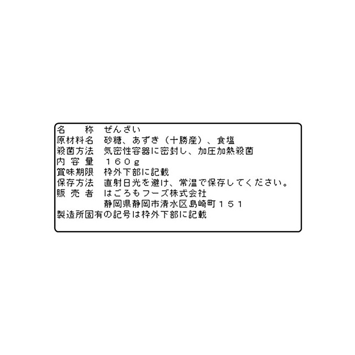 원본상품명: はごろも つぶあん好きのぜんざい 160g (4014)
