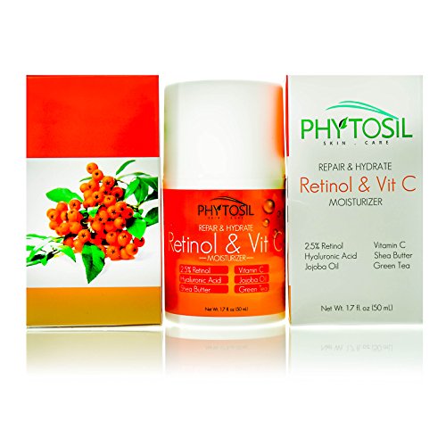 -. Binding : Misc. -. Brand : Phytosil -. Color : yellow -. EAN : 0702082686867 -. Feature : CONTAINS HIGHEST STRENGTH OF RETINOL AVAILABLE: This is the ideal moisturizer for day or night. It works vigorously to hydrate, diminish wrinkles, firm sagging skin and smooth skin texture. Formulated with 2.5% Retinol which to date, is the highest strength of retinol available. This moisturizer will transform dull, aging skin to restore its youthful brilliance! / BUILDS COLLAGEN, HYDRATES PARCHED SKIN & SMOOTHS SKIN TEXTURE: Worried about sagging skin? Vitamin C helps to boost the production of collagen which helps the skin to stay firm and supple. Hyaluronic Acid plumps the skin and offers superior hydration while Jojoba Oil delivers excellent moisture without leaving a greasy residue. This moisturizer will ensure that skin becomes soft and smooth with a healthy glow. / COMBATS BLEMISHES, PREVENTS ACNE, PIMPLES & BREAKOUTS: In addition to reducing the look of deep-set wrinkles and fine lines, retinol also works to erase and prevent blemishes. Even better, Jojoba Oil has antiseptic properties and is non- greasy in texture, hence it is also a very effective treatment for acne. It helps to fight harmful bacteria growth that causes pimples, blackheads, and breakouts. / 100% MONEY BACK GUARANTEE, SAFE INGREDIENTS, PROUDLY MADE IN THE USA: We promote health, harmony and honesty in all facets of our business. Phytosil's Retinol & Vitamin C Moisturizer does not contain any toxic ingredients that may harm your skin or our planet. We also back all our products with a 100% Money Back Guarantee. If you are not satisfied for any reason we will give you a full refund - no questions asked! / FIGHTS WRINKLES, FADES AGE SPOTS, ELIMINATE DARK CIRCLES & PUFFINESS: Retinol is proven to be one of the most effective ingredients for fighting wrinkles and visible signs of aging. The combination of retinol and Vitamin C helps to fade age spots, even skin tone and restore sun-damaged skin. Under-Eye bags a problem? The caffeine in Green Tea helps to shrink blood vessels underneath the skin and eliminate dark circles and puffiness around the eye area. This moisturizer will help your face to look youthful, energized and radiant! -. Label : Phytosil -. Manufacturer : Phytosil -. MPN : B014RR28B0 -. PackageQuantity : 1 -. PartNumber : B014RR28B0 -. ProductGroup : Beauty -. ProductTypeName : BEAUTY -. Publisher : Phytosil -. Studio : Phytosil -. Title : Retinol & Vitamin C Moisturizer- For Day & Night- 2.5% Retinol, 20% Vitamin C, Hyaluronic Acid, Jojoba Oil & Green Tea - Hydrate, Firm & Tighten, Build Collagen, Fade Dark Spots - Phytosil 1.7 OZ -. UPC : 702082686867