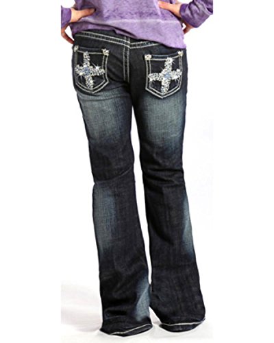 Studio : Rock Roll Cowgirl Publisher : Rock Roll Cowgirl Binding : Apparel Product Description Help your little western angel feel like a princess when she wears these jeans from Rock and Roll Cowgirl. These jeans have beautifully embellished back pockets that feature clear and blue crystals. The faded coloring gives this pair a well-worn look that she will love to pair with her favorite boots. She will love pulling these jeans on every chance she gets. 0