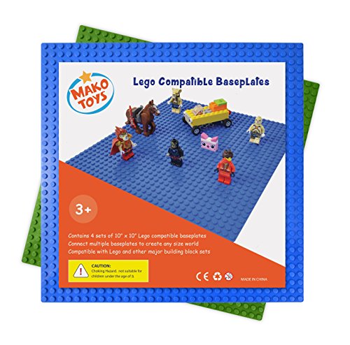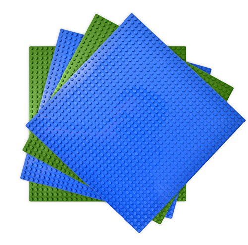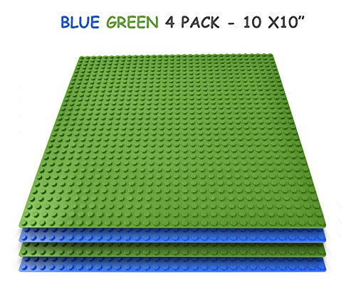 Title : Lego and Duplo Compatible Baseplates (4 pieces of 10" x 10") in Blue and Green, Works with Major Brick Building Sets, Wonderful Plate for Kids
