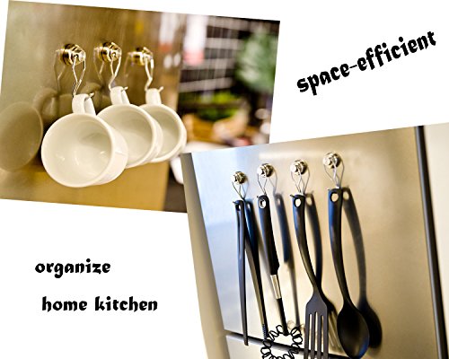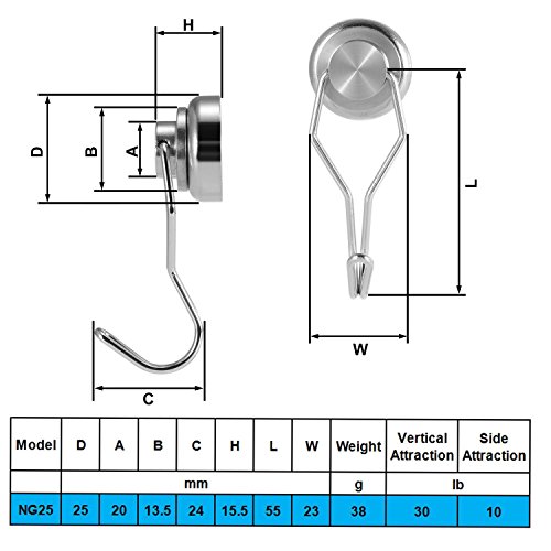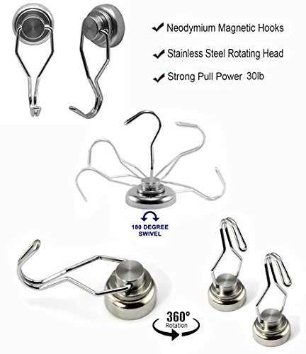 Studio : Mecooa Publisher : Mecooa Binding : Office Product Product Description Why choose magnetic hooks ? Are you sick of the clutter? Are you tired of not enough space to storge? magnet hooks help us to solve this problems. magnetic hooks have follow advantage : 1. Reusable magnetic hooks can be recycle used, will not broken or drop off, and easy to take away for another place, compare with plastic adhesive hooks, sticker hooks, mangetic hooks more easy and convenient, save much money, remove without any trail on surface, protect our furniture surface from the glues Lifetime Gurantee the magnetic hooks made of high quality stainless steel with strong powerful magnets. 2.Portable if we will go picnic or hiking , camping outside, these magnetic hooks can be helpful, hanging on grill, travel car, organzation small objects. 3, Double Use strong magnet back on the hooks ,so it can be as magnets, also have swing swivel hooks for hanger. Features: A great solution for organizing your workshop, christmas wreath hanger on metal door, garage, shed, closet, kitchen,washing line, hanging lines, decoration, shed tools, cabinets, product display, retail store, warehouse or office,school Each hook base incorporates a super strong 1" neodymium rare earth magnet that will last a lifetime Long 2" hook arm rotates 360 degrees on its base and moves 180 degrees up and down for maximum versatility Hang everything from clotheslines, tools, utensils, toys, pots, pans, craft and paint supplies, hats, coats, aprons, sports equipment, bags and practically anything else Holds up to 30 lbs if is attached vertically, pull strength is reduced by up to 66 percent if attached horizontally