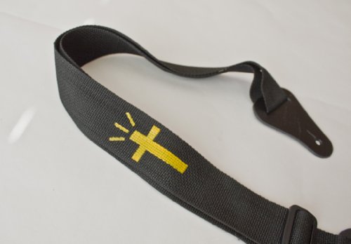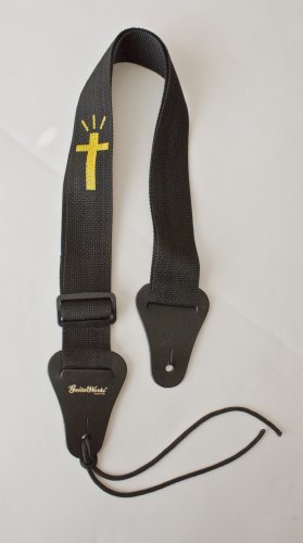 -. Title : Christian Guitar Strap Black Nylon Gold Cross with Solid Leather Ends & Heavy Duty Tie Lace For Acoustic & Electric Quality Made in U.S.A.