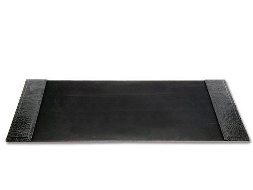 Dacasso Black Crocodile Embossed Leather Desk pad with Side-rails, 25.5 by 17.25 Inch