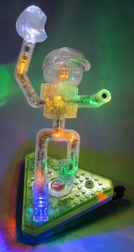 -. Feature : Includes 16 Laser Pegs, 80 Construction Bricks, Triangle Power Base, Instruction Manual / 100% Compatible with Other Major Construction Kits / Requires 3 AA Batteries, Not Included