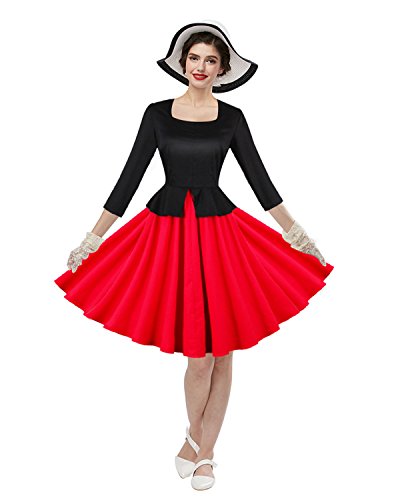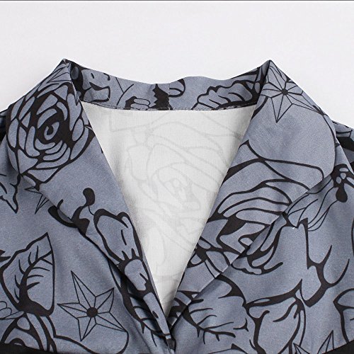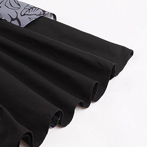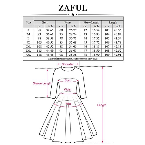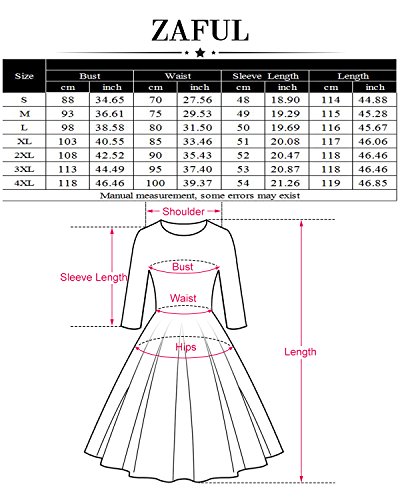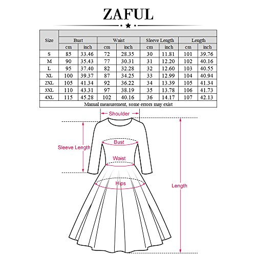 ZAFUL Women 1950s Vintage Dress 3/4 Sleeve V Neck Swing Party Dress with Bow Ribbon Belt(Black4XL)