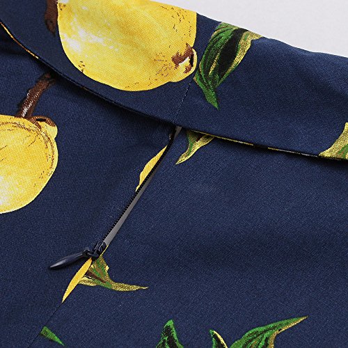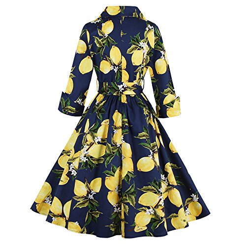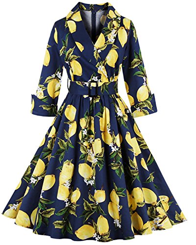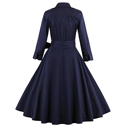 ZAFUL Women 1950s Vintage Dress 3/4 Sleeve V Neck Swing Party Dress with Bow Ribbon Belt(Navy 3XL)
