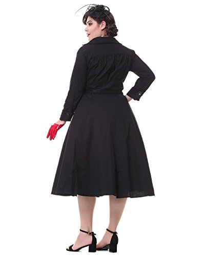 ZAFUL Women Vintage Lapel V Neck 3/4 Sleeve Dress Patchwork Button Cocktail Party Swing Dress Plus Size (4XL, Black 1)