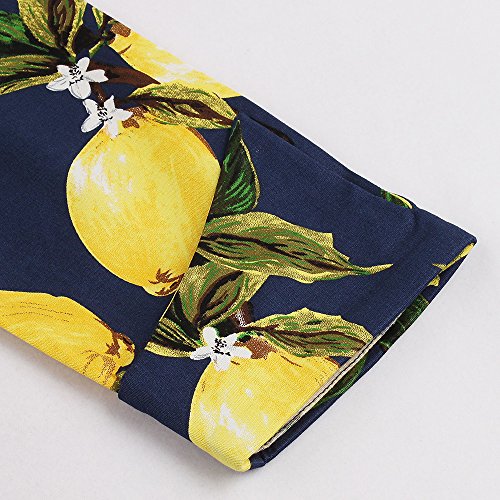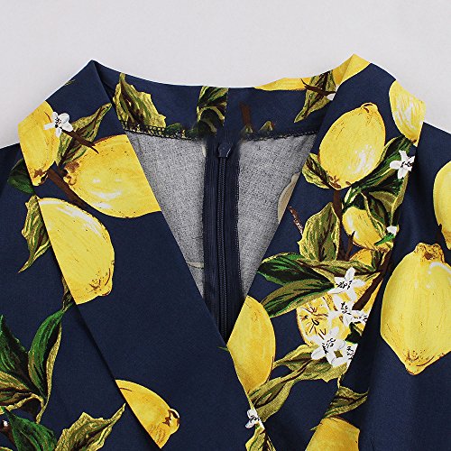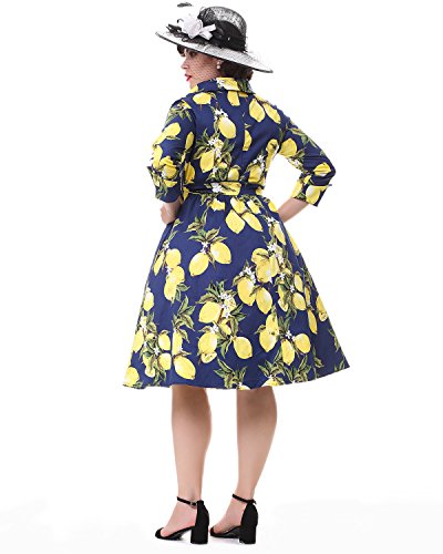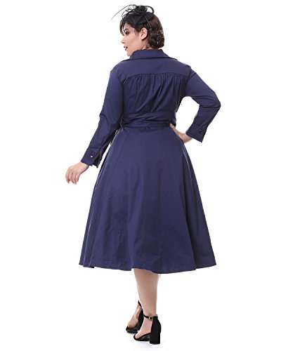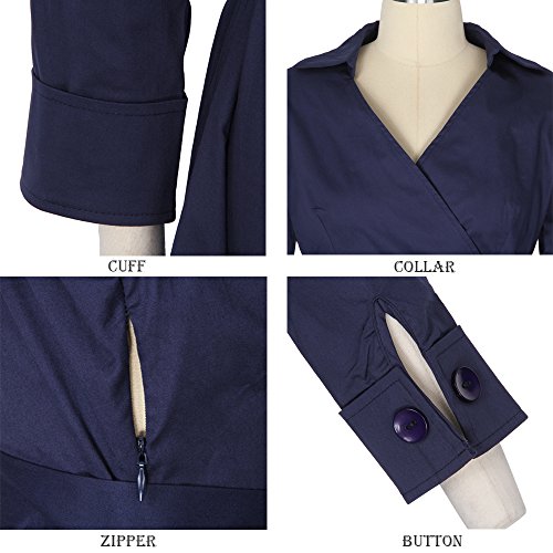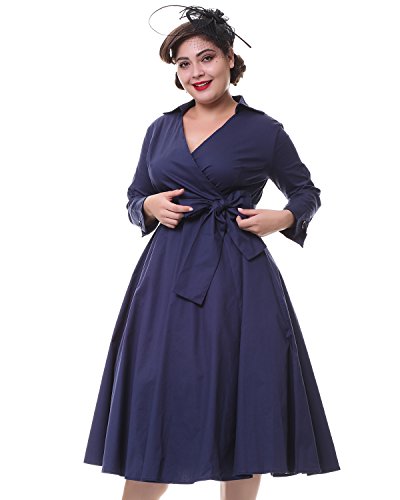 ZAFUL Women 1950s Vintage Dress 3/4 Sleeve V Neck Swing Party Dress with Bow Ribbon Belt(Navy 4XL)