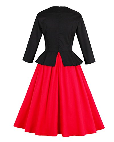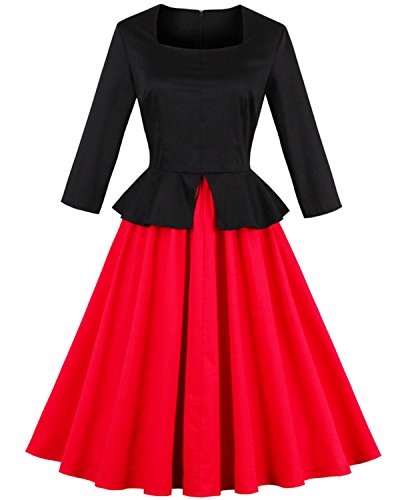 ZAFUL Women 1950s Vintage Dress 3/4 Sleeve V Neck Swing Party Dress with Bow Ribbon Belt (S, Red2)