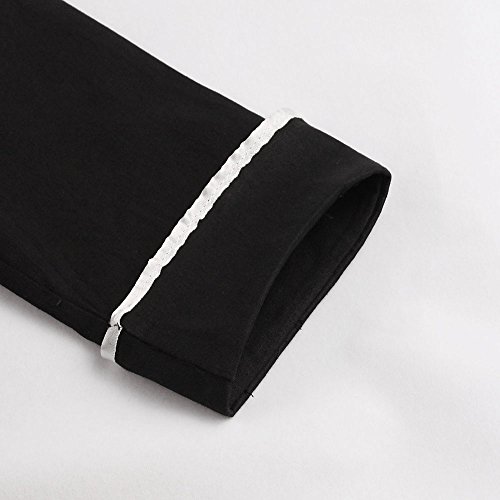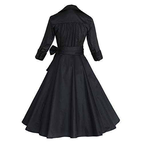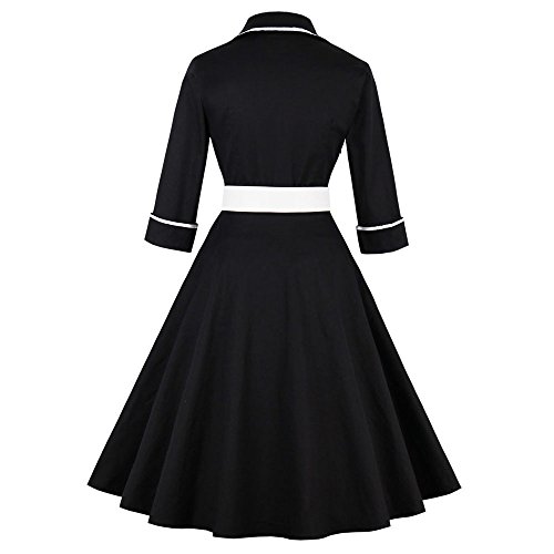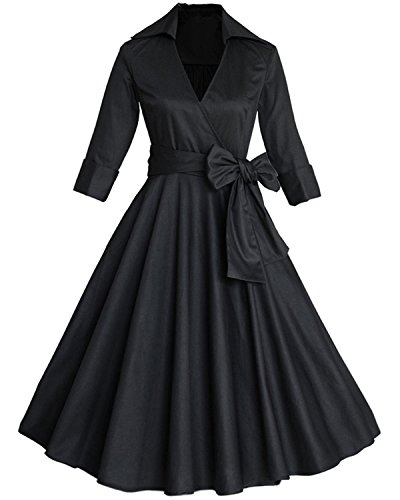 ZAFUL Women 1950s Vintage Dress 3/4 Sleeve V Neck Swing Party Dress with Bow Ribbon Belt(Black XL)