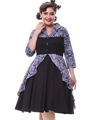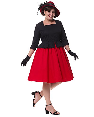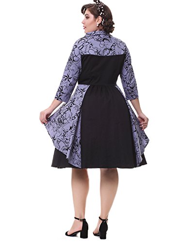 ZAFUL Women Vintage Lapel V Neck 3/4 Sleeve Dress Patchwork Button Cocktail Party Swing Dress Plus Size (2XL, Black 1)