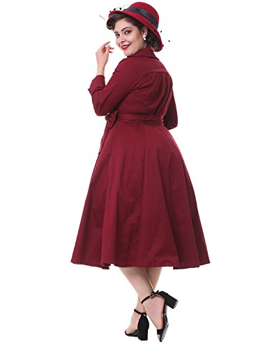 ZAFUL Women 1950s Vintage Dress 3/4 Sleeve V Neck Swing Party Dress with Bow Ribbon Belt (4XL, Wine)