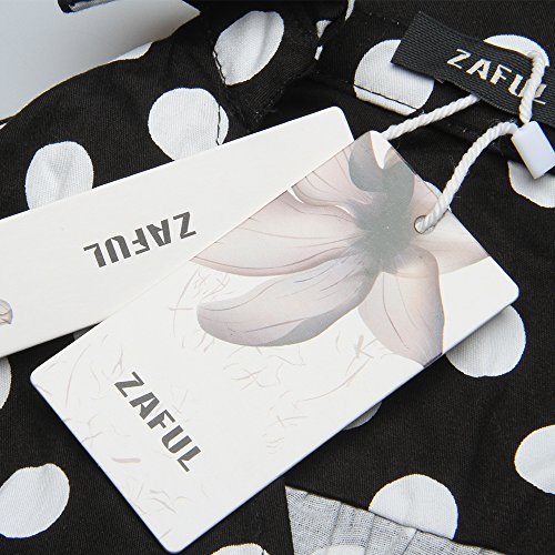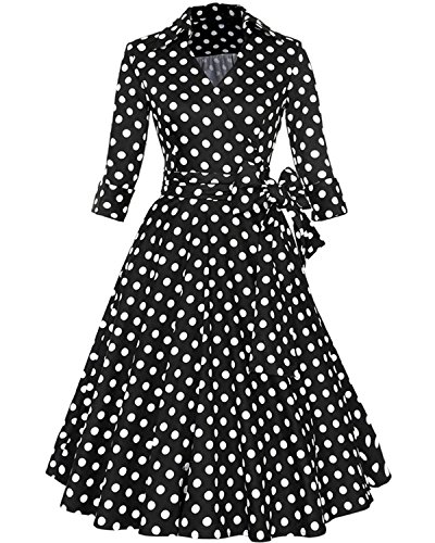 ZAFUL Women 1950s Vintage Dress 3/4 Sleeve V Neck Swing Party Dress with Bow Ribbon Belt(Polka Dot S)