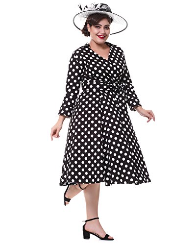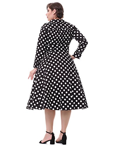 ZAFUL Women 1950s Vintage Dress 3/4 Sleeve V Neck Swing Party Dress with Bow Ribbon Belt(Polka Dot 4XL)
