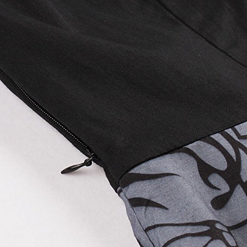 ZAFUL Women Vintage Lapel V Neck 3/4 Sleeve Dress Patchwork Button Cocktail Party Swing Dress Plus Size (L, Black 1)