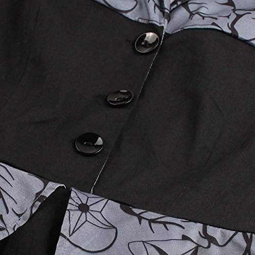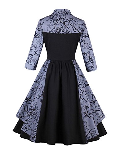 ZAFUL Women Vintage Lapel V Neck 3/4 Sleeve Dress Patchwork Button Cocktail Party Swing Dress Plus Size (XL, Black 1)