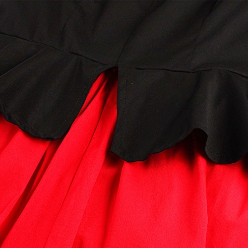 ZAFUL Women 1950s Vintage Dress 3/4 Sleeve V Neck Swing Party Dress with Bow Ribbon Belt (4XL, Red2)