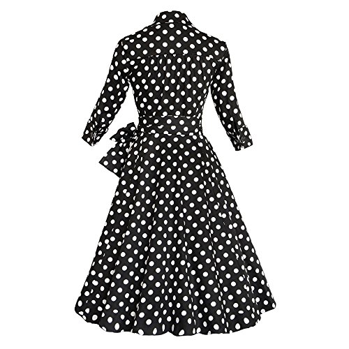 ZAFUL Women 1950s Vintage Dress 3/4 Sleeve V Neck Swing Party Dress with Bow Ribbon Belt(Polka Dot L)